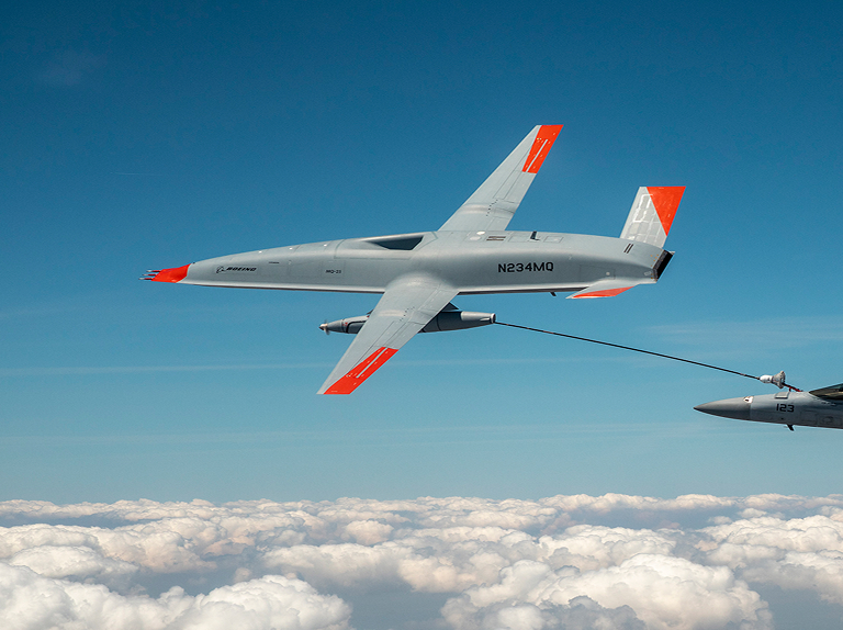 MQ-25 will unlock manned-unmanned teaming for the carrier air wing and will pioneer technologies for seamless integration of future manned and unmanned systems. Boeing has virtually demonstrated an F/A-18 pilot commanding an unmanned MQ-25 to release a refueling drogue and refuel the Super Hornet, using existing communications links on both platforms.