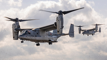 The V-22 Osprey is a joint service tiltrotor that combines helicopter vertical performance with turboprop speed and range. It takes off, lands and hovers like a helicopter, then converts in flight to deliver airplane speed and high-altitude cruise — enabling unique long-range infiltration, assault, search and rescue, medical evacuation and disaster relief missions. With shipboard stowage, aerial refueling, modern fly-by-wire controls and a global sustainment network, the V-22 provides unmatched operational flexibility and rapid response for joint and allied forces.